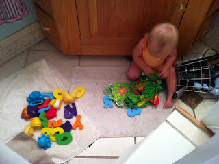 After breakfast we headed back to my Aunt's house to change and while we were there Ben got to meet Pepper (the littlest attack dog) he thought he was so funny. Poor Pepper has to be locked up when people are there because he doesn't like strangers. So Olivia and Ben were watching him through the cage. All she did was laugh. Finally it was off to the pool for a few hours, to let the Little's play. Olivia was in the water for 2 hours and I'm sure she didn't want to get out. If this kid could live in the water she would.